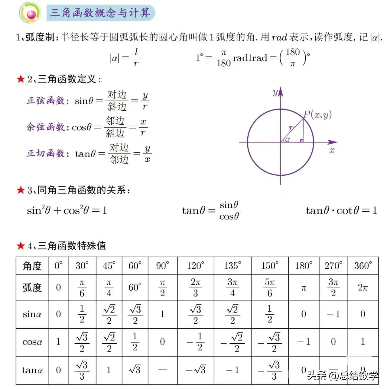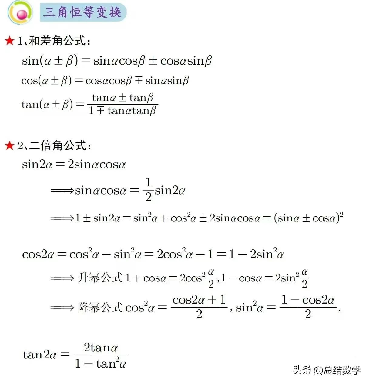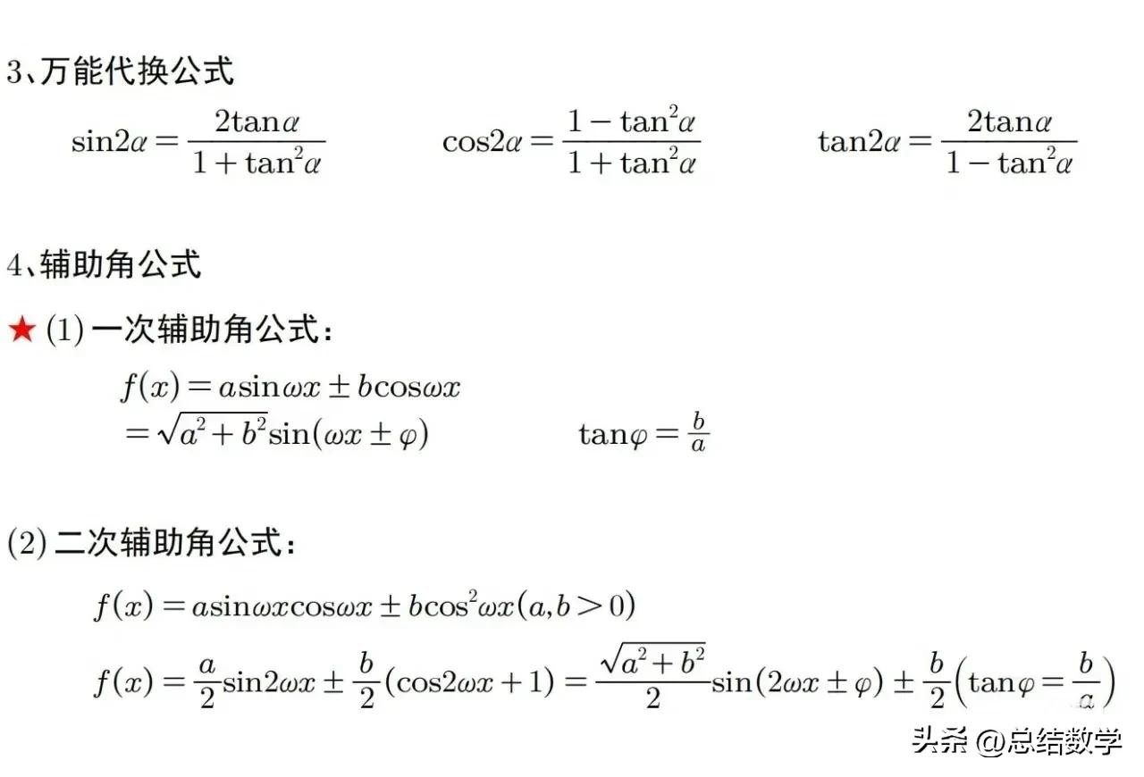 在学习三角函数的过程中,掌握一些关键的公式是必不可少的。这些公式不仅能够帮助我们更好地理解三角函数的性质,还能在解题过程中起到至关重要的作用。以下是一些三角函数必背公式,方便随时查阅。