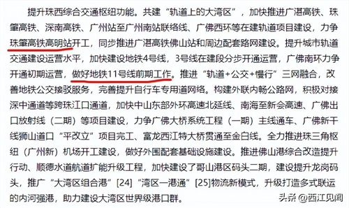 明显侧重于在建工程。对于地铁11号线,只有一句做好前期工作。而佛山地铁2号线二期连提及都没有,但提及珠肇高铁高明站力争开工。