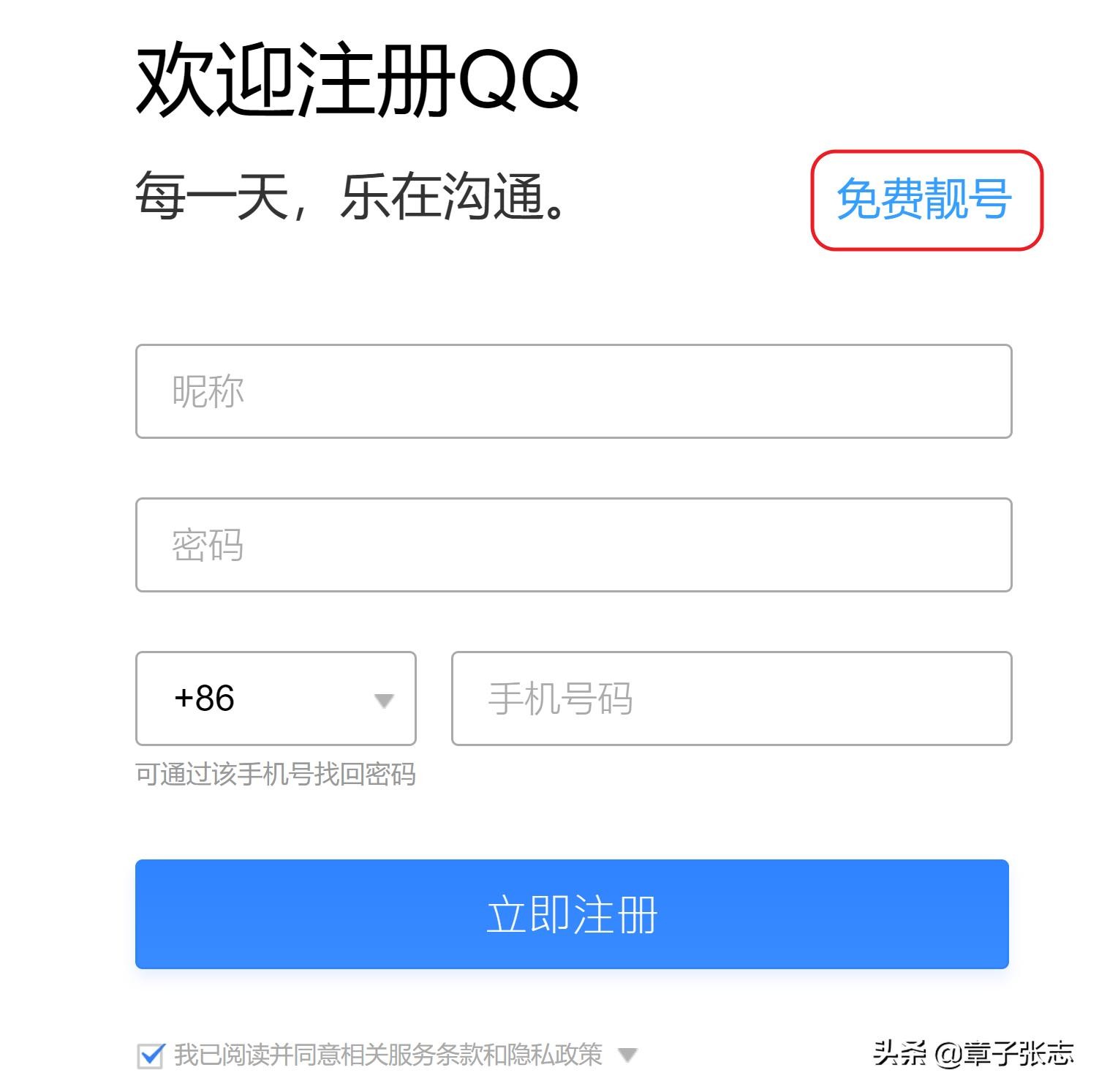 打开QQ的注册页面:https://zc.qq.com,会自动跳转到注册页面。注意:最好在电脑上操作,如在手机浏览器中打开这个页面,可能会提示使用QQ app来注册。点击【免费靓号】,如果碰到合适的就注册,没有合适的可以改天再来,每天都会放一些号。这些号是完全免费的,但也遵循“QQ号码回收规则”。这里填写的手机号仅用于验证,不与QQ绑定。一个手机号只能注册一个免费靓号。