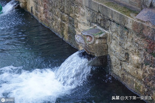 乌黑的虎头微张着巨嘴,而清澈是泉水就源源不断地从虎口里喷涌而出,声响巨大,画面非常宏伟壮观。而在虎口之下,则是静静流淌的泉水,它们清澈见底,缓缓地流淌着,似乎在诉说着属于黑虎泉的故事。
