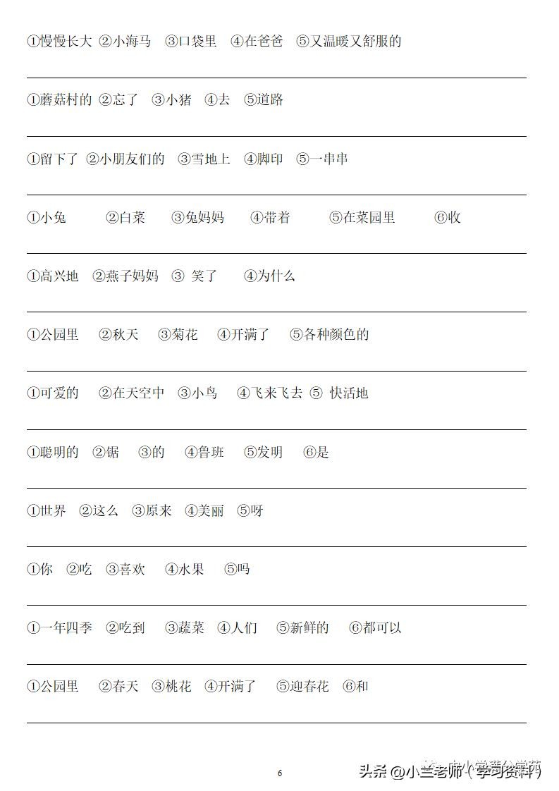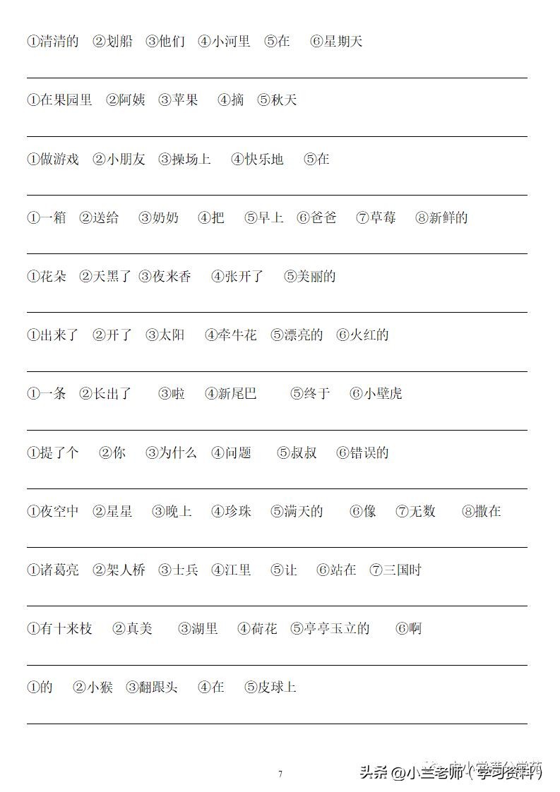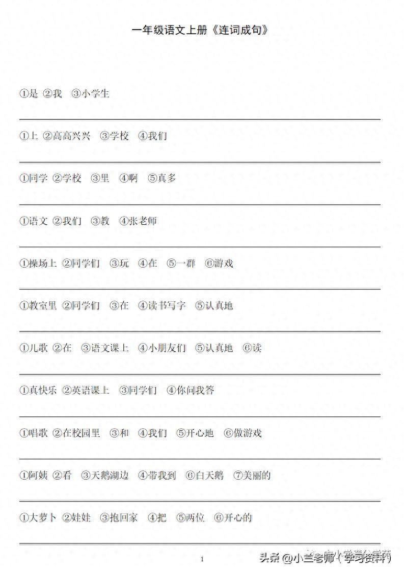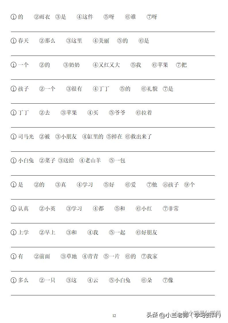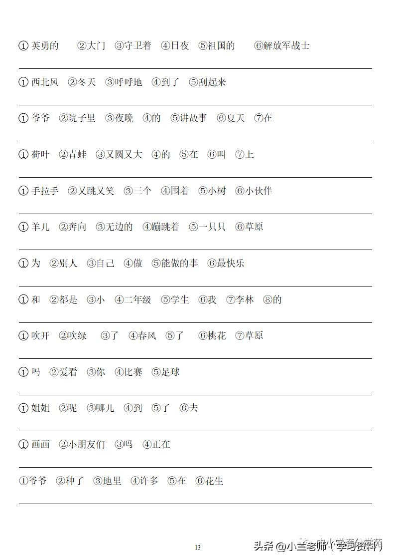 一年级语文上册《连词成句》,13页专项练习,做到全面掌握!