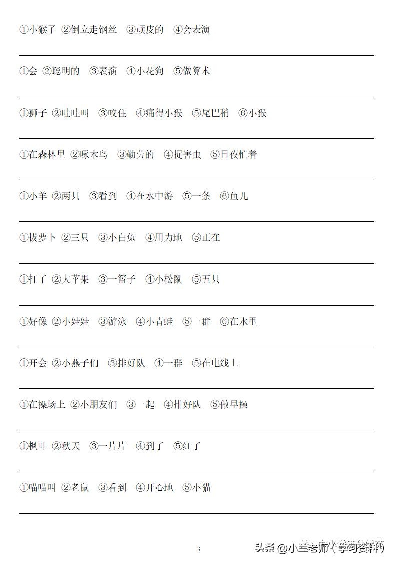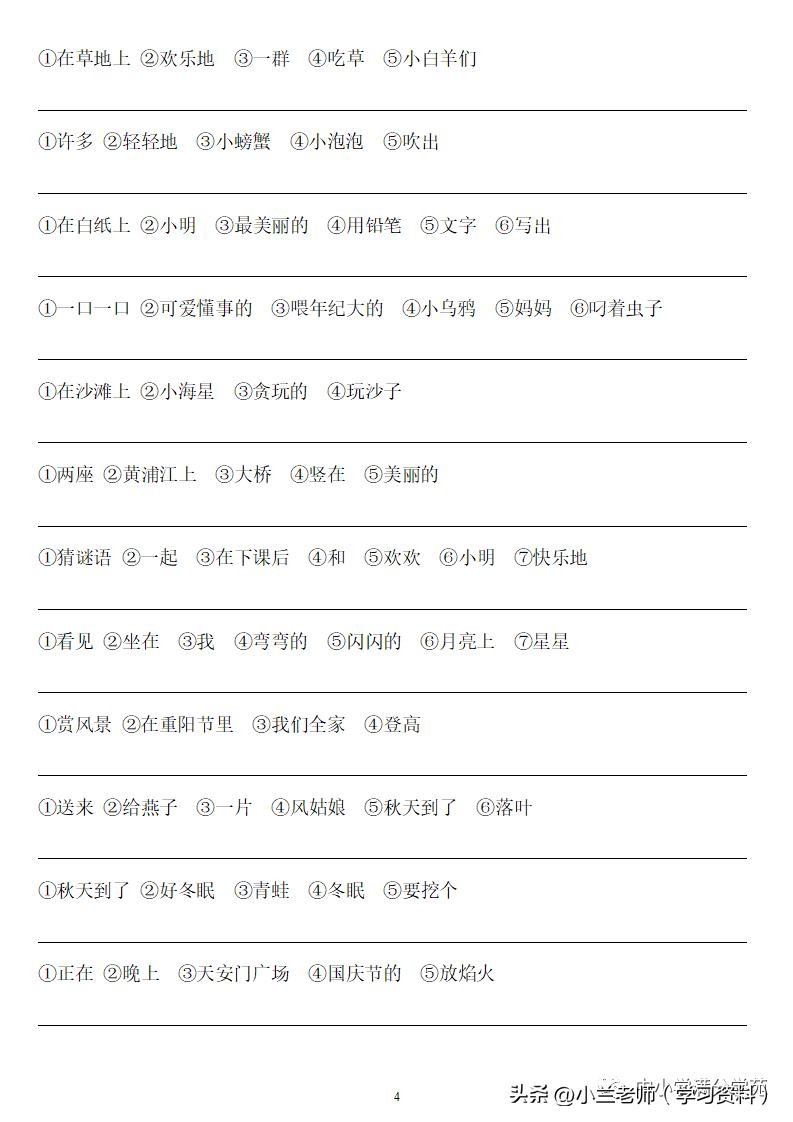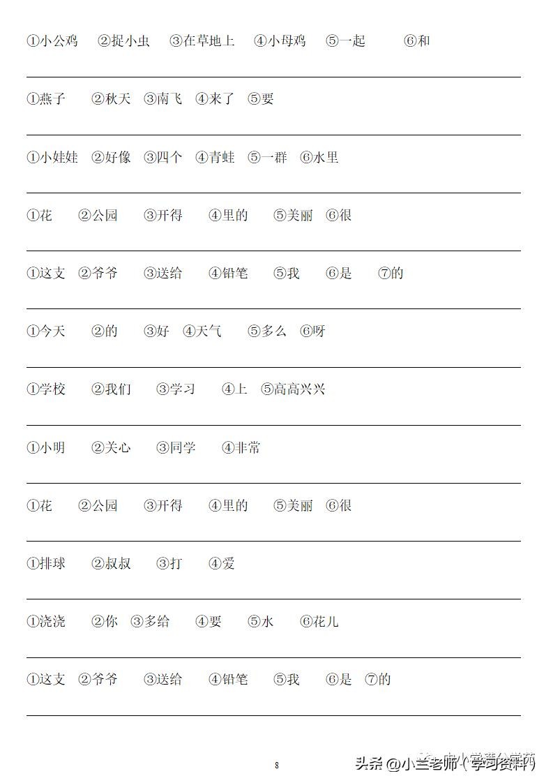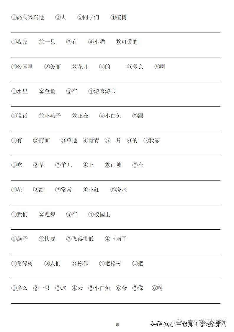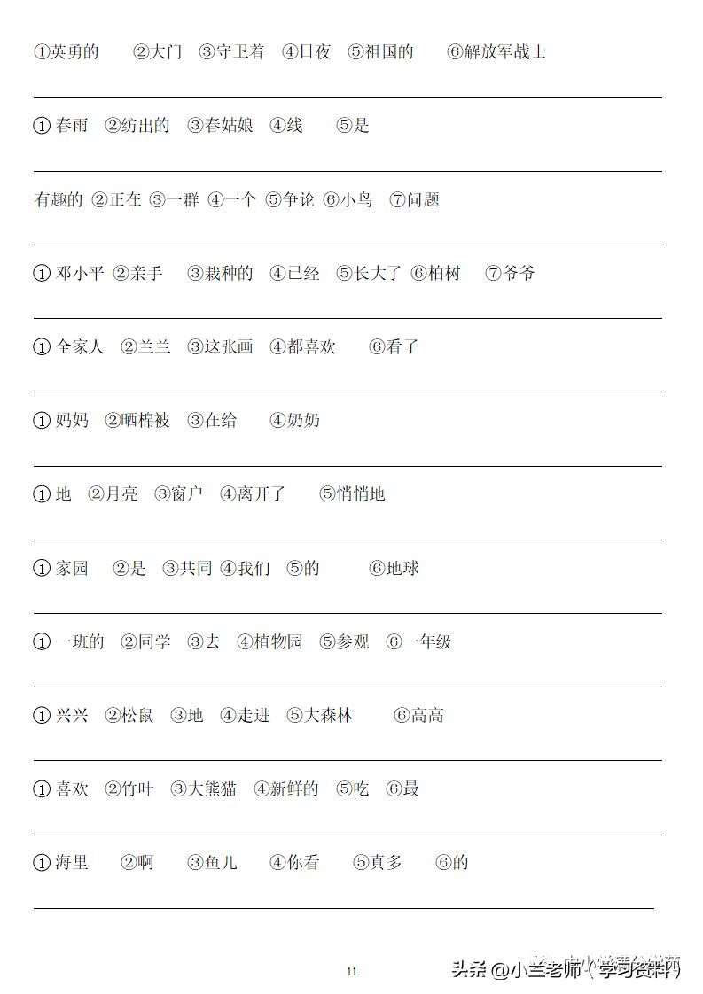 一年级语文上册《连词成句》,13页专项练习,做到全面掌握!