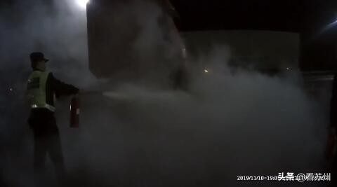 待车子靠近,民警惊讶地发现,这辆货车车头着火了!