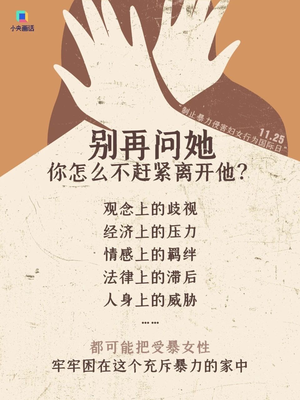 我们必须明确,这一切都不是受害者的“错”。观念上的歧视、经济上的压力、情感上的羁绊、法律上的滞后、人身上的威胁……都可能把遭受家暴女性牢牢困在这个充斥暴力的家中。