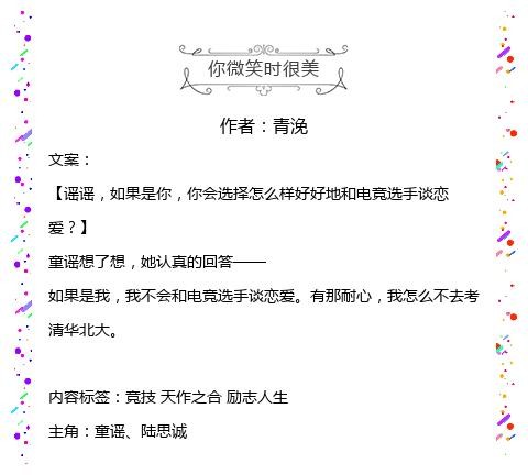 经典电竞甜文,主推《你微笑时很美》