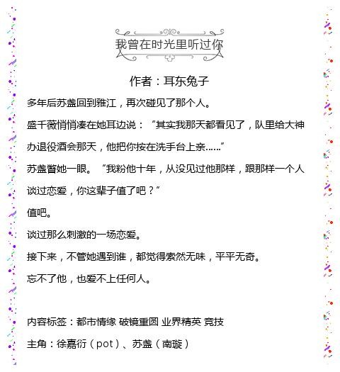 四、我曾在时光里听过你 作者:耳东兔子