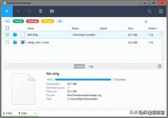 第二款,FDM,全名Free Download Manager免费软件,一款跨平台的下载软件,支持BT和磁力,免费无广告,可以说是一款良心软件