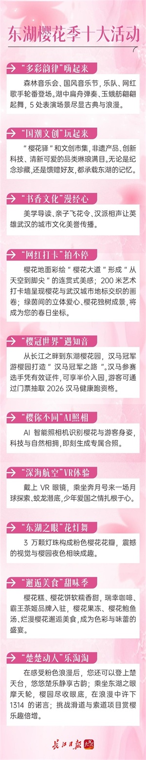 据了解,今年东湖樱花季,东湖风景区打造出三大特色赏樱体验。