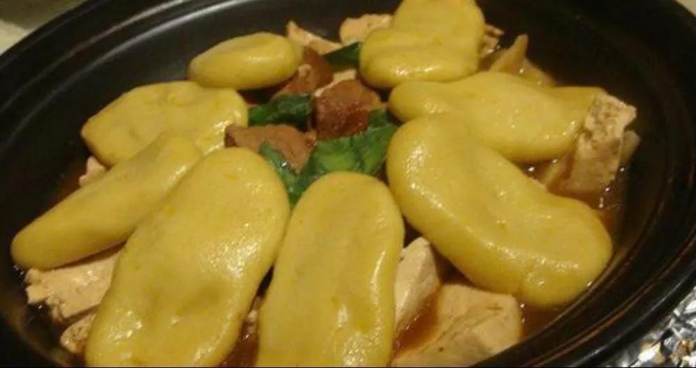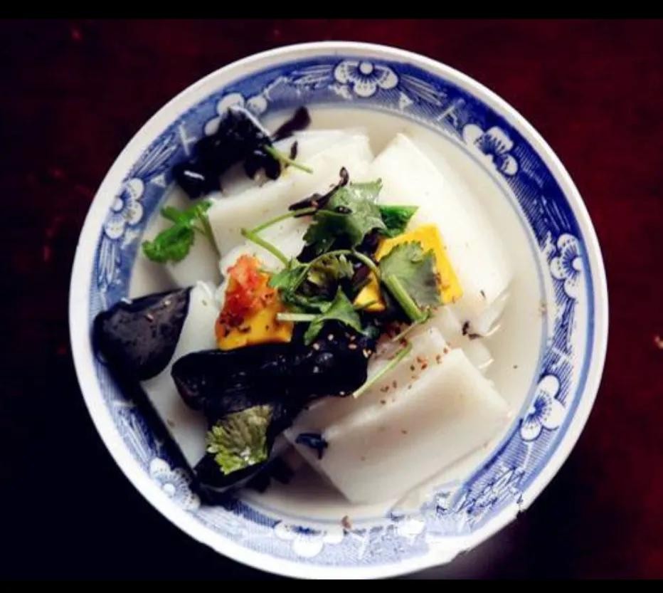 木耳圪贝:木耳圪贝是山西晋城有上百年历史的传统名吃,是“十大碗”宴席中的头道菜,因制法特殊在当地广为流传。烧上一锅水,把准备好的食材都放进去,锅开了掉点香油散点芝麻就可以出锅了,用筷子捞上一些半透明的、类似凉粉一类的淀粉类制品,其色泽洁白清亮,柔软利口,汤味清香。