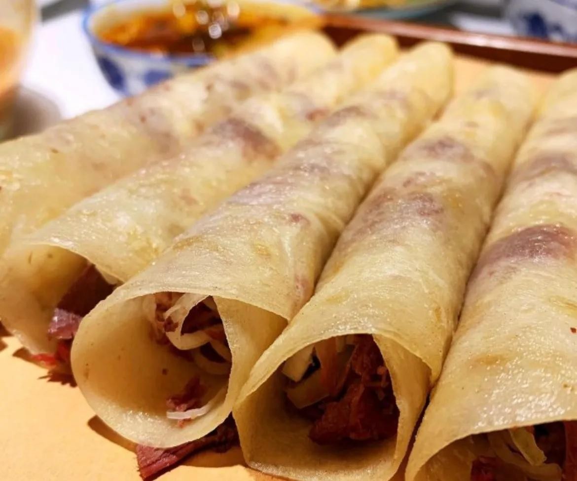甩饼:“甩饼”是上党地区独家经营的名小吃,因起源与潞城,故又称“潞城甩饼”,若用甩饼卷上腊驴肉吃,民间又叫“甩饼卷腊肉”。油旺旺、香喷喷、不软不硬,回味无穷。驴肉甩饼已有100余年的历史,原料配有精面粉、驴油、葱花、椒盐、腊肉片等。