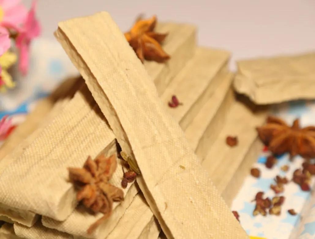 广灵豆腐干:五香豆腐干是山西北部地区广灵县的特色传统名产,已有100多年的制作历史,享誉雁北、大同、河北等地。这种五香豆腐干为条状,色泽白里透黄,质地硬中有韧,成香耐嚼,越嚼越香。在1981年山西省副食品鉴定会上,获出口产品第一名。