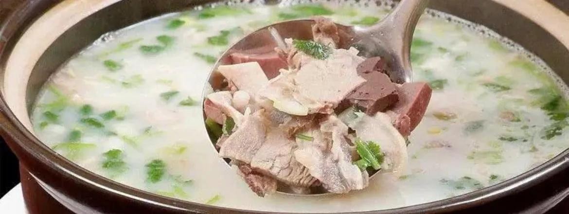 壶关羊汤:羊汤是壶关的传统名吃,同山西雁同一带的羊杂割汤、运城一带的羊汤泡馍,并称为山西羊汤三大流派。喝壶关羊汤先要讲究时令,约是从当年中秋到次年清明之间七个多月时间。壶关羊汤一大特点是讲究尝全羊,即一碗汤中要有七八个羊肉饺子、三五个羊肉丸子、几块炖肉、血条、脂油与头、蹄、口条及胃、肠、心、肝、肺、腰等内脏切成的条条或块块,除羊的皮毛之外,应有尽有,连羊骨髓也熬在老汤中。壶关羊汤又一特点是讲究老汤。每座羊汤馆里除正锅外,另设一口大砂锅专供炖羊骨架和羊肉块,此锅从中秋做汤开始坐在火上,到次年清明止,边舀边续,老汤不断。喝羊汤还要配吃黄蒸才算最好配伍。黄蒸是用黍米面包豆沙、枣泥馅做成的馍,极软、极甜、极粘。喝一碗羊汤,吃一两个黄蒸,热乎乎、香喷喷,足以称得上是美餐一顿了。