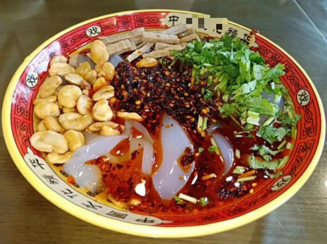浑源凉粉:浑源凉粉是山西省大同市浑源县一道特色小吃,是以土豆淀粉、豆腐干、蚕豆为原料制作而成,浑源凉粉是大同凉粉的代表。做好的浑源凉粉清亮、滑嫩、爽口,像猪皮冻似的“筋颤”。拿在手上“滑溜溜”,吃在嘴里“凉丝丝”。风味独特,堪称北岳一绝。