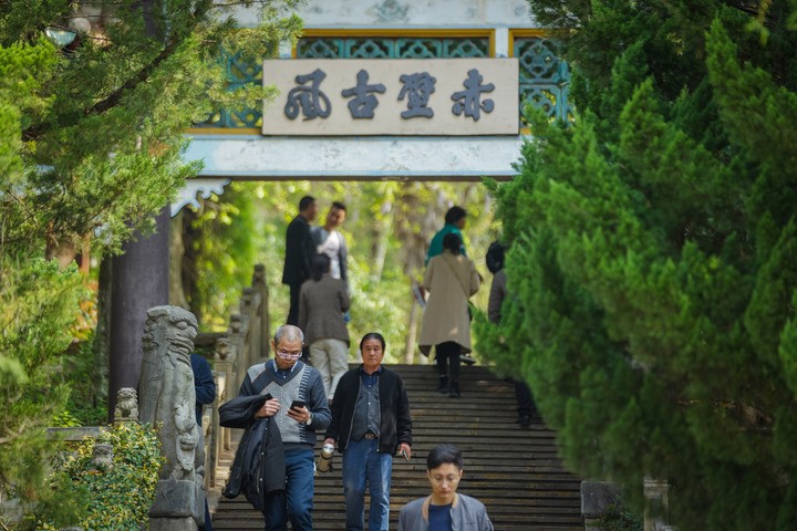 2023年3月30日,游客在三国赤壁古战场景区游览。新华社记者 伍志尊 摄