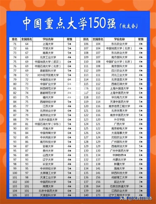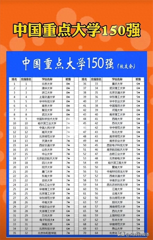 中国重点大学150强!