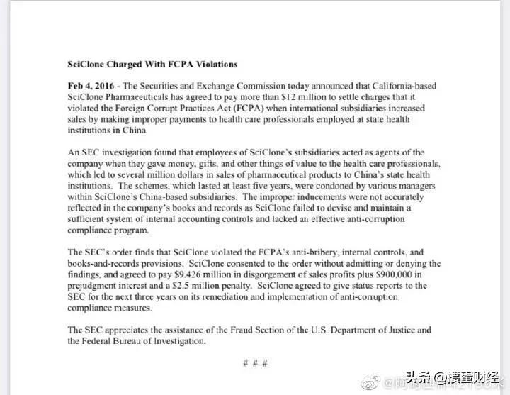 药物上市。但是日达仙在中国获批并畅销多年。美国证券交易委员会和美国司法部的调查揭示,从2005年起,赛生对中国卫生部门的人员进行了贿赂,承包医务人员的旅游,花钱请人专门疏通官方关系以便获得新药批准,还给开药的医护人员“好处费”。2016年2月,美国证券交易委员会宣布,赛生制药公司违反了《反海外腐败法》,赛生同意支付一笔庞大的费用(1280万美元),庭外达成了民事和解。