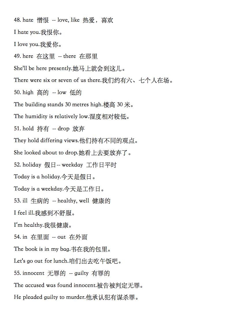 大家好,今天给大家分享的是高中英语100组常见正反义词汇总,收藏打印!