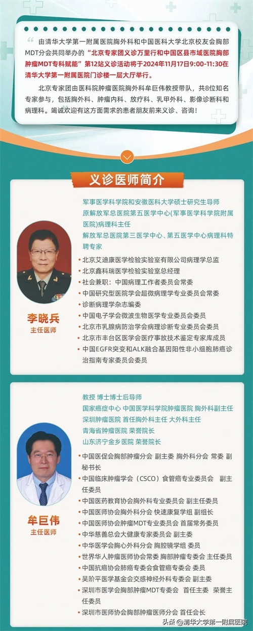 知名肿瘤专家将在清华大学第一附属医院义诊啦!