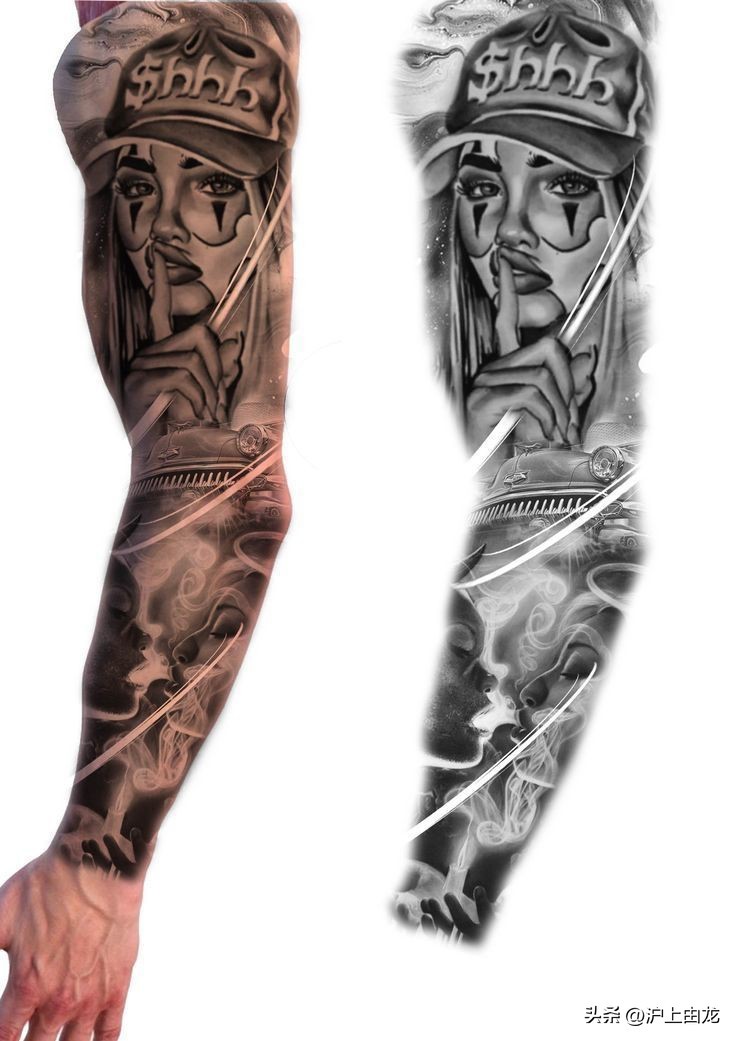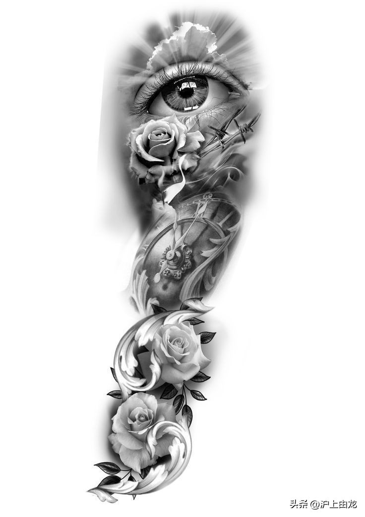 九张写实花臂手稿图案