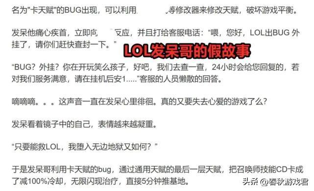 事实上,杜撰【发呆哥事件】的作者,也是LOL毒液蛮王的作者。该作者的厉害之处,在于写的故事与一些LOL真实情形相对应,真真假假,普通玩家很容易因为其中“真”的一部分,去相信另外的“假”的一部分。据悉,该作者写“发呆哥”和毒液蛮王的时候,也没想到能带来如此深远的影响。