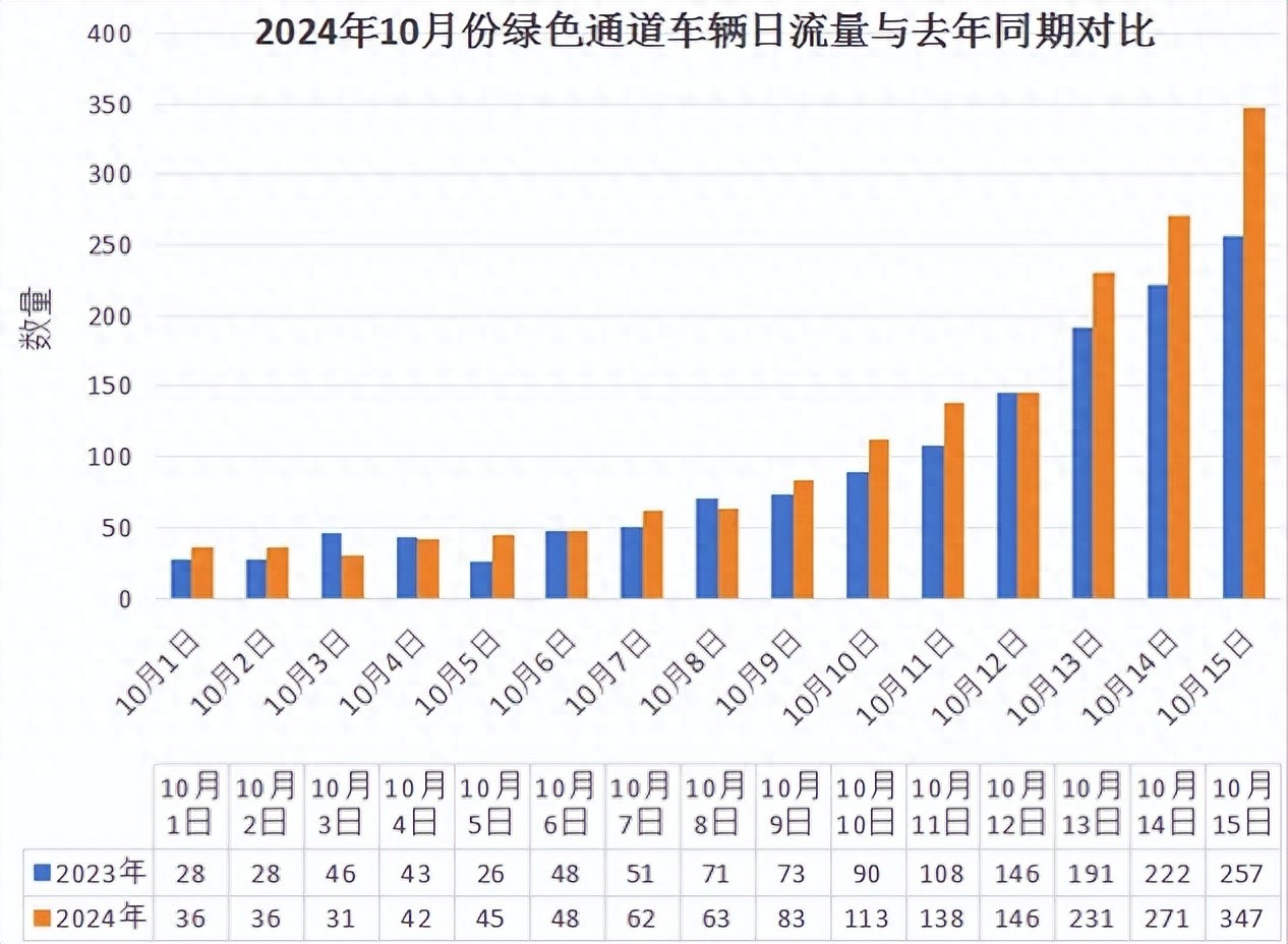 十月份以来,洛川等主要收费站已累计核验放行“绿通”车辆 2222 辆,与去年同期相比增长 13.77%,未出现拥堵等突发情况,车辆通行顺畅,现场秩序良好。(冯小娟)