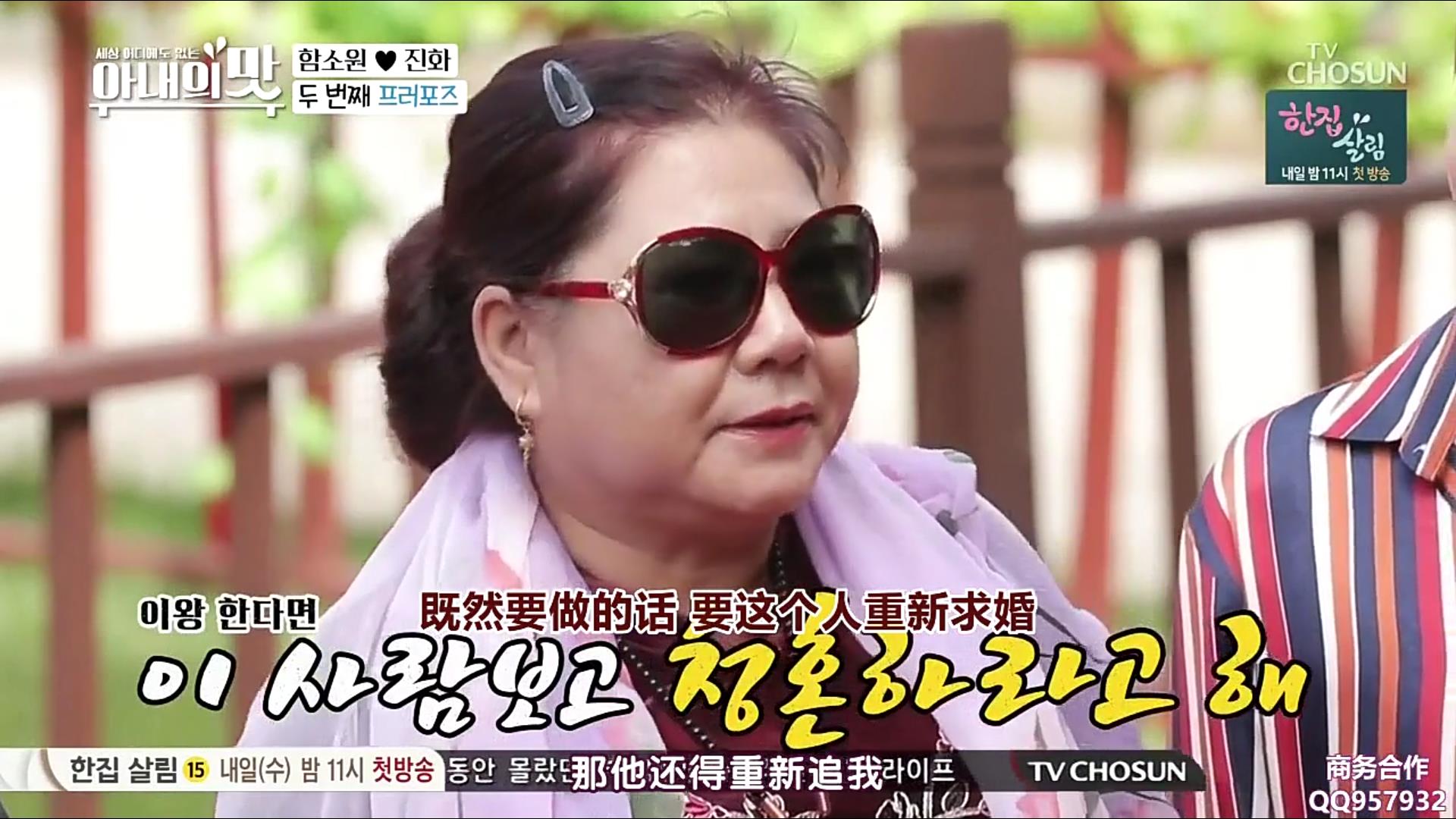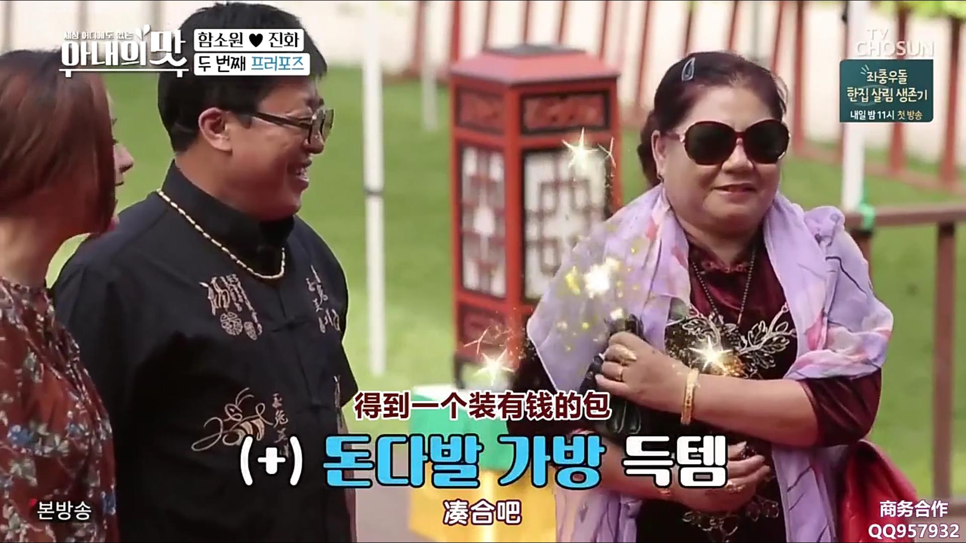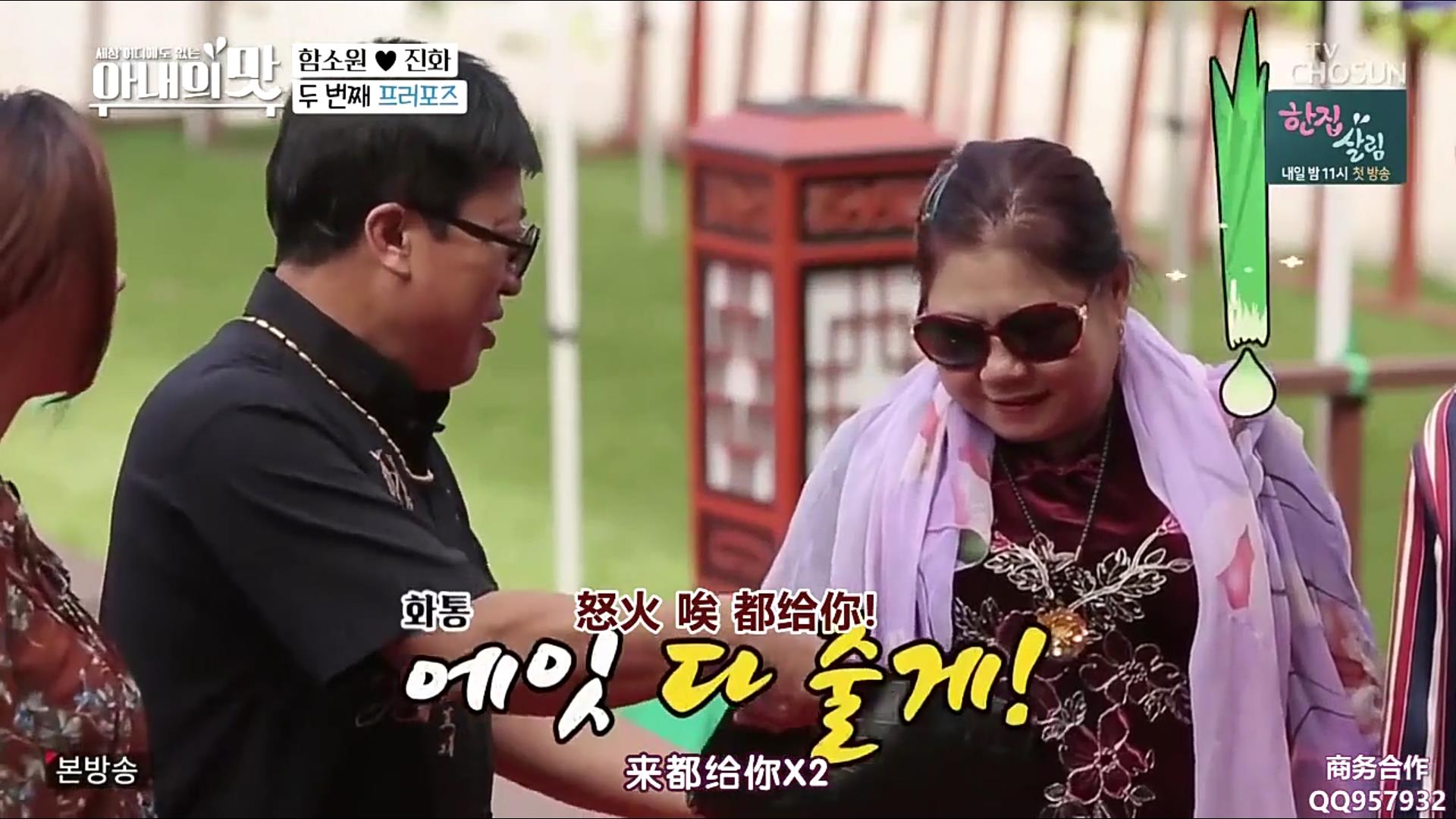 对于咸素媛安排的韩式传统婚礼,婆婆表示要老伴重新再求婚一次,害羞的公公半开玩笑地说“我不要”,实际上也是对于老夫老妻做这样的事感觉到不好意思。在素媛的引导下,公公将手上的包直接塞到了老伴的手上,意思是“东西都给你,嫁给我吧”,而婆婆就是一如既往地霸气回道“凑合吧”。