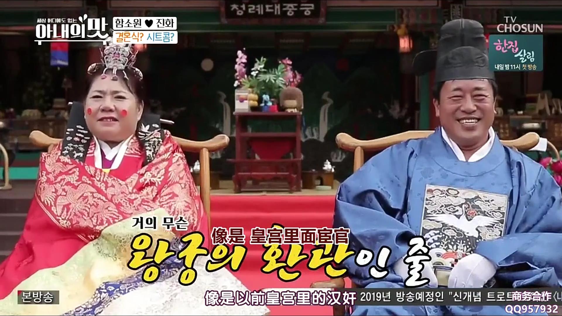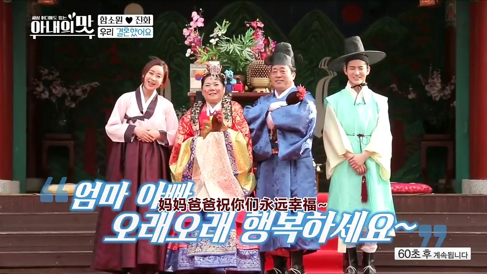 节目最新一期,咸素媛得知公公婆婆年轻的时候结婚没有举行婚礼,于是贴心地为两人安排了韩国传统婚礼。