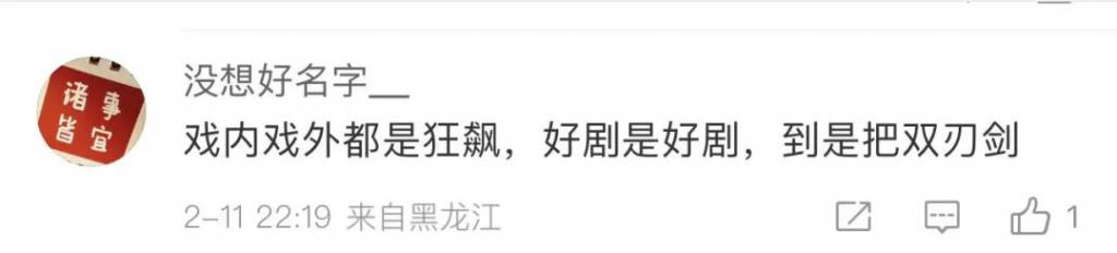 1 月 17 日,含笑在官方微博发布关于《狂飙》的消息:" 一口气追平 9 集 实在是精彩 张译 张颂文两人之间的对手戏太过瘾了 好演员 "。