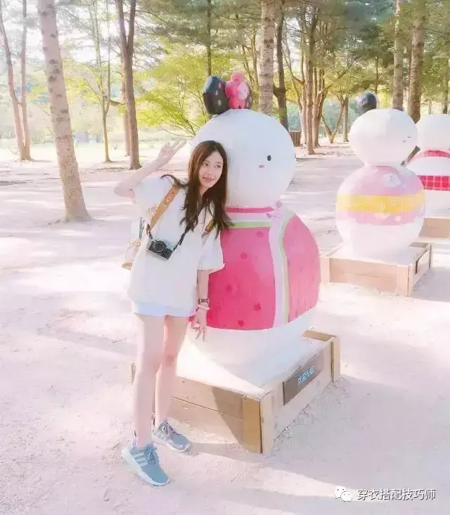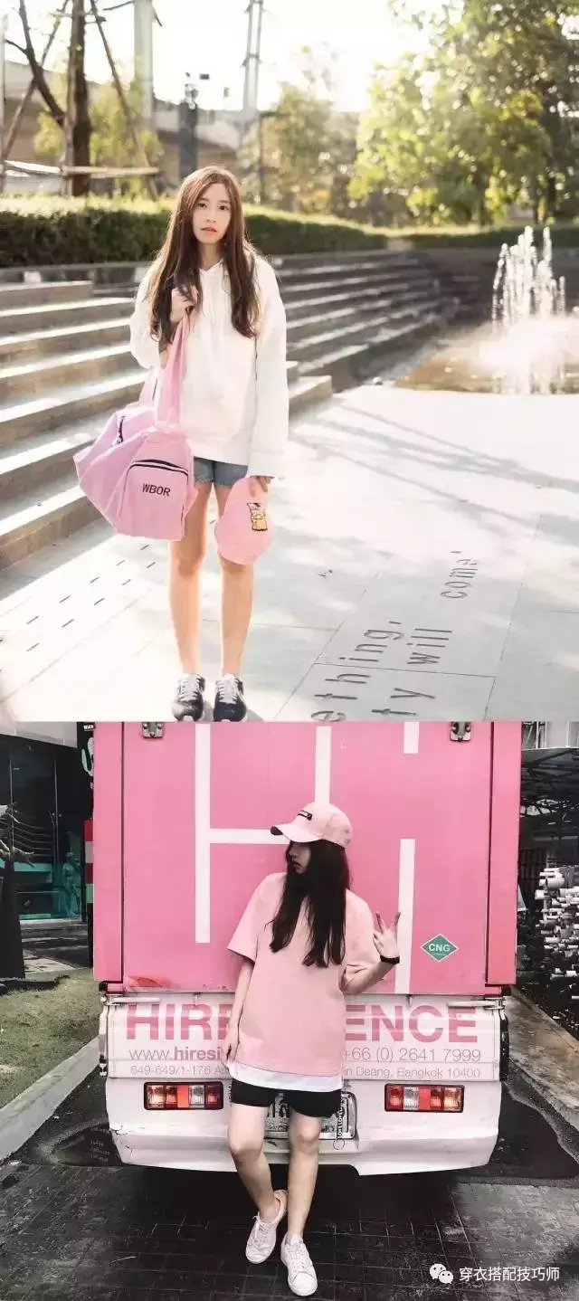 oversizedT恤,搭配同色系的短裤,俏皮可爱。