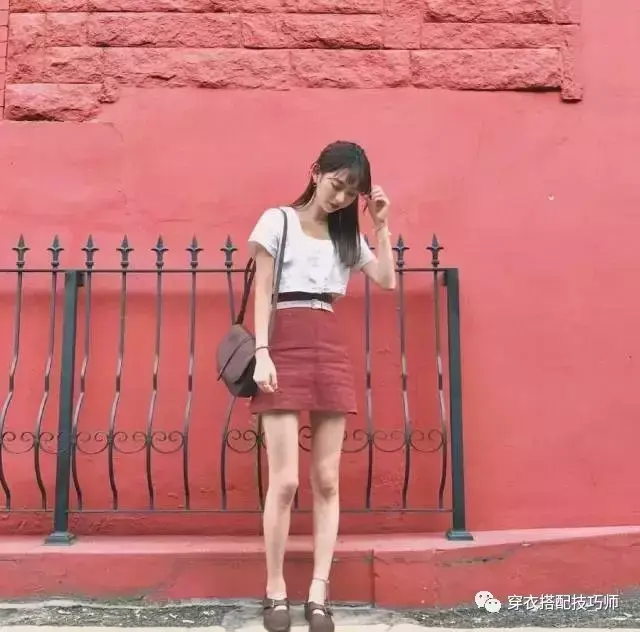 个子小的女生可以选择短款上衣搭配高腰裙,显腰身的同时又可以露出大长腿。