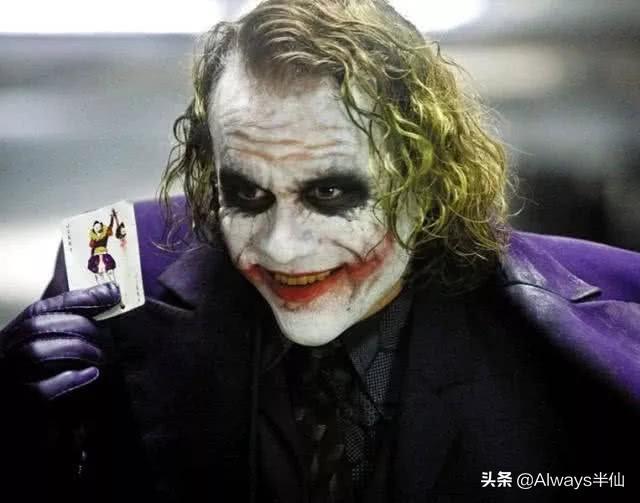 图六:“不是你蝙蝠侠赢了,而是我小丑不想玩了。”看到这句话的时候就莫名心痛,在《蝙蝠侠·黑暗骑士》里面,小丑真的超级惊艳!不管是演技还是形象,都让人眼前一亮。只是最后小丑扮演者希斯·莱杰自杀了,他当时的超模女友也因为这个消息,消沉了很久。