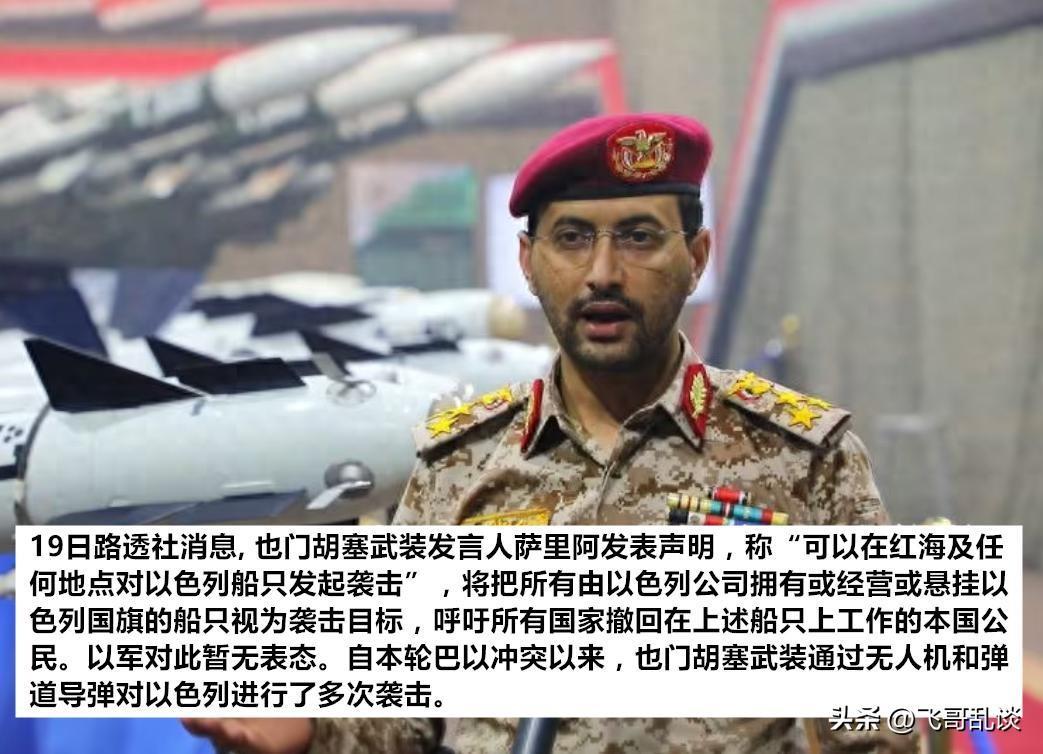 更劲爆的是,土耳其动嘴,也门胡塞武装动手,隔着两千多公里,几乎天天导弹、无人机“访问”以色列。胡塞武装发言人19日宣布,“可以在红海及任何地点对以色列船只发起袭击”,包括挂以色列国旗船只,呼吁所有国家撤回在以色列船只上工作的本国公民。胡塞武装被以色列无视远程打击激怒了,准备直接在家门口动手。