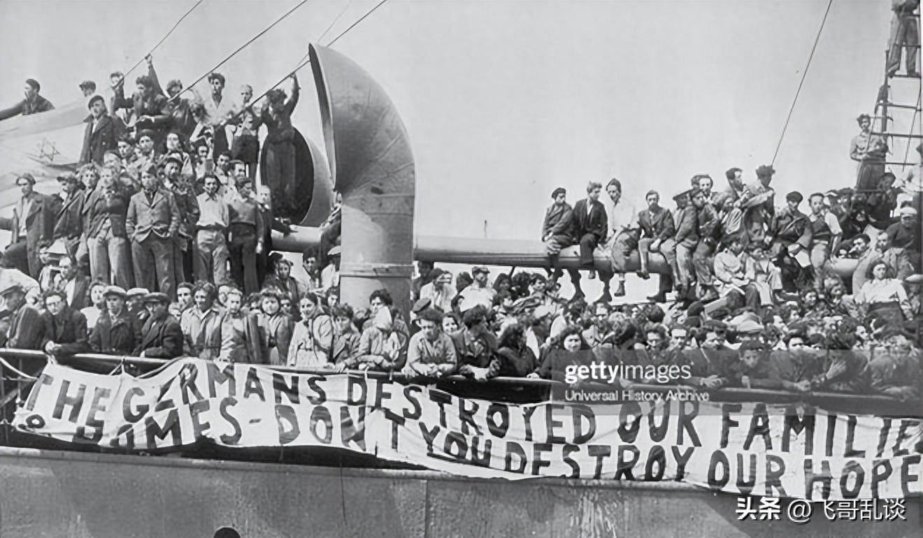 1947年犹太人打着横幅来到了巴勒斯坦:“德国人摧毁了我们的家庭和家园,你们不要摧毁我们的希望!”