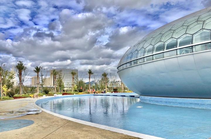 10月19日,记者来到公园探营,发现这座外观漂亮的飞碟建筑像极了星际穿越的外星飞行器。“飞碟”内部有些什么呢?工作人员表示,这是个公园的配套建筑,飞碟的内部还在招商中。