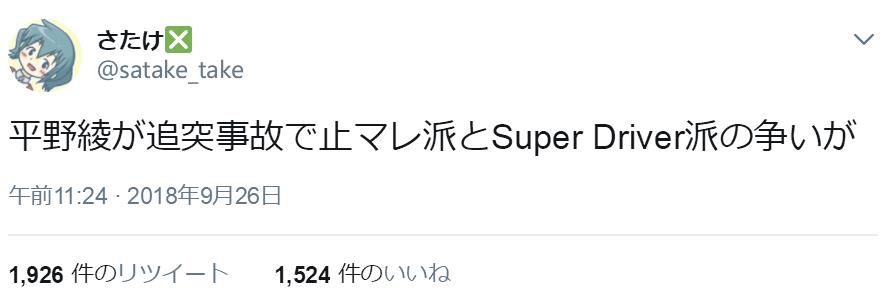 据日媒报道,声优平野绫在近日驾车时因没注意到前方等待信号灯的车辆而不慎发生了追尾事故,所幸事故中双方都没有受伤,也没有逃逸。不过这条新闻及相关推特下面,却引发了众多日本网友的疯狂吐槽……