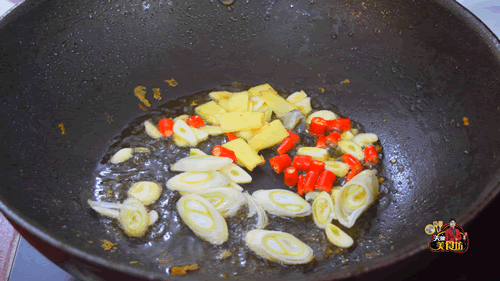 第四步:锅内留煎鱼的油烧热,然后放入配料(葱、姜、蒜、小米椒),然后小火炒香,炒香之后,放入1汤匙的豆瓣酱,然后小火炒出红油,再放入300毫升清水,加入半茶匙食盐,加入1汤匙生抽,加入1汤匙蚝油,然后边煮边搅动,将汤汁煮开!