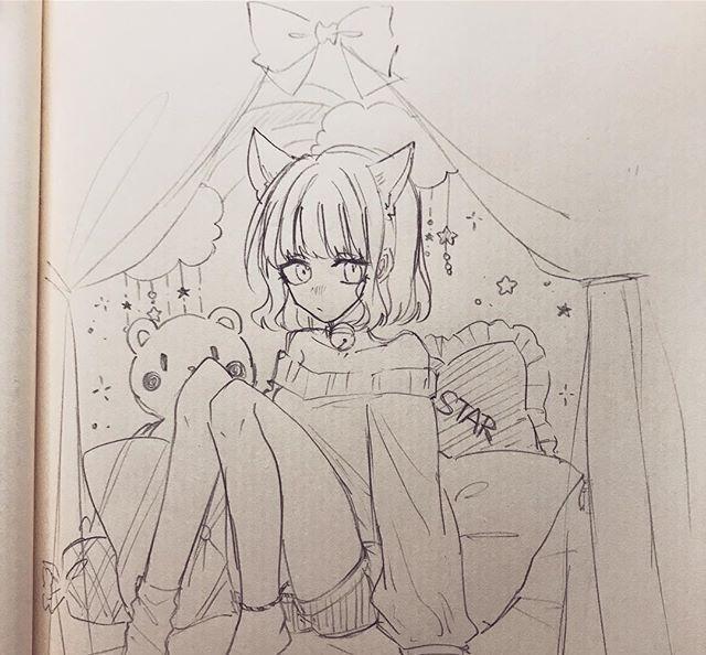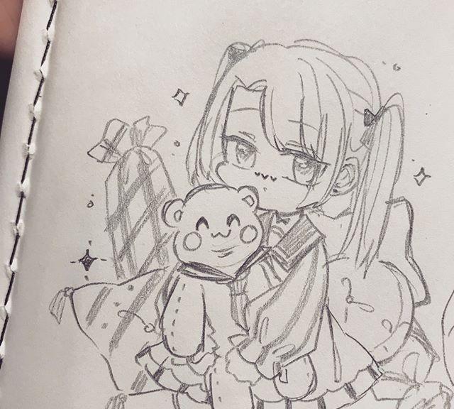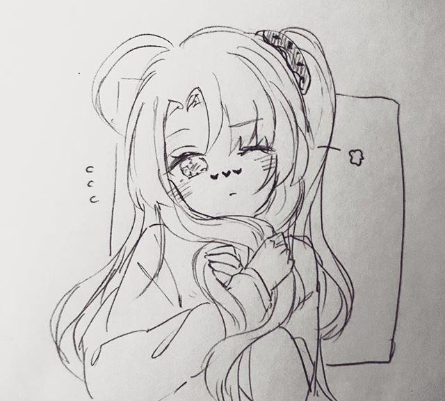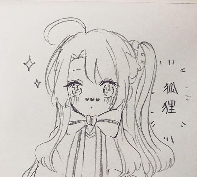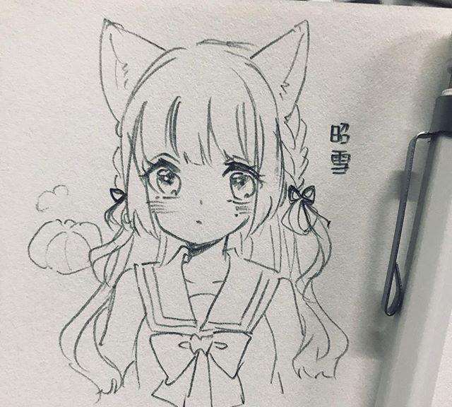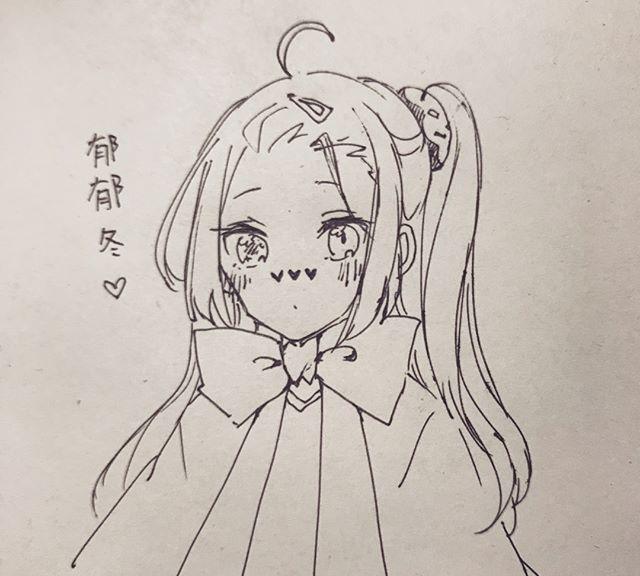 铅笔人物手绘,超可爱的卡通女孩线稿,萌萌的
