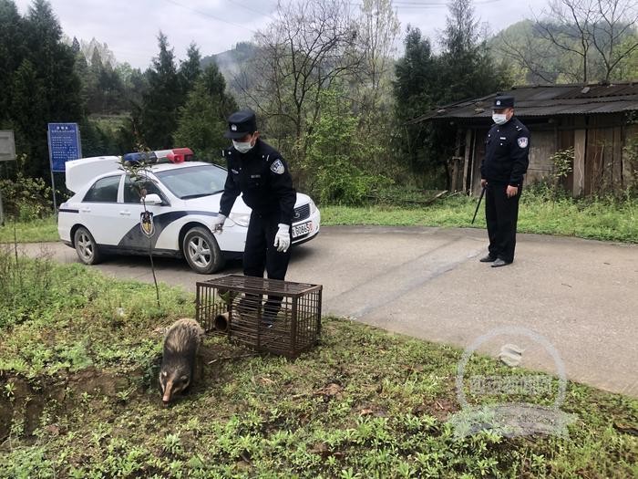 经初步检查,民警发现该猪獾生命体征完好,没有外伤,也未发现有其他伤病,遂将猪獾放归山林。