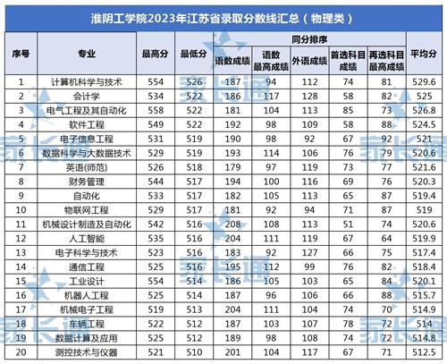 最高558分!淮阴工学院2023年江苏省各专业录取分数汇总!