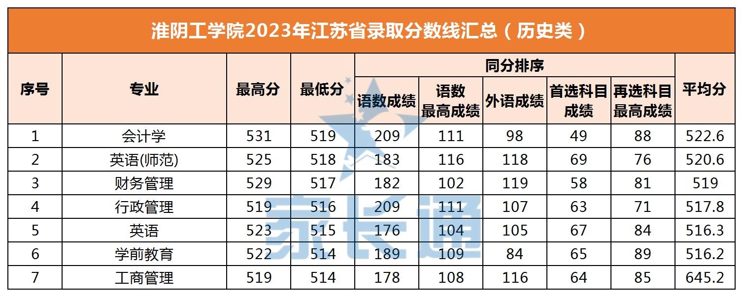 2023年淮阴工学院江苏省普通批历史类 ,录取最高分是:531分——会计学;录取最低分是:514分——学前教育、工商管理。