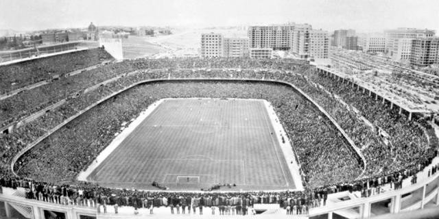 圣地亚哥·伯纳乌球场由当时只上任一年的主席伯纳乌计划兴建, 1944年 10月27日开始动工,于 1947年 12月14日正式落成,起初球场名为Estadio Chamartin,随后举行球场第一场比赛对 葡萄牙的比兰伦斯(Os Belenenses)。