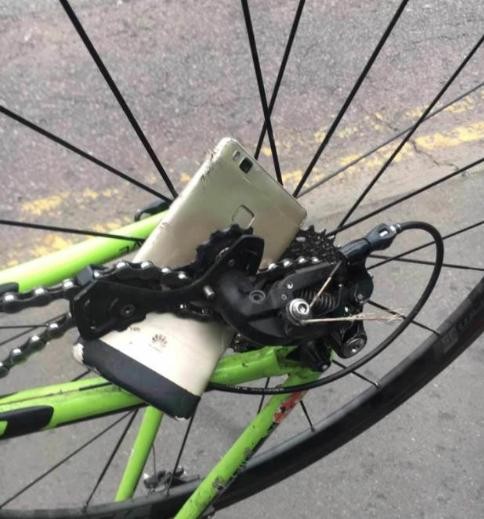 8张图告诉你什么叫运气差,而且不是一般的差,图为手机掉下去那一刻,就被链条给压了