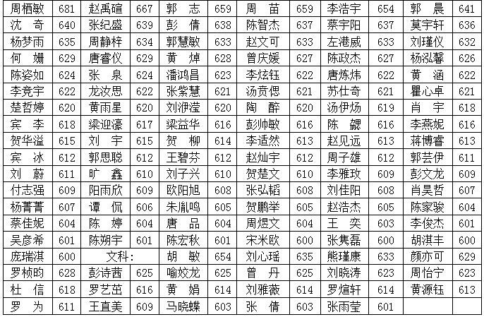 ★周栖敏同学以681分(清华大学自主招生加10分)勇夺湘潭市理科状元,赵禹碹以667分的成绩夺全市理科第二名,胡敏同学以654分居全市文科第三名。