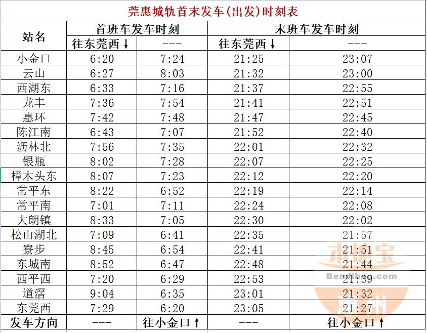莞惠城际最新首末班车发车时间