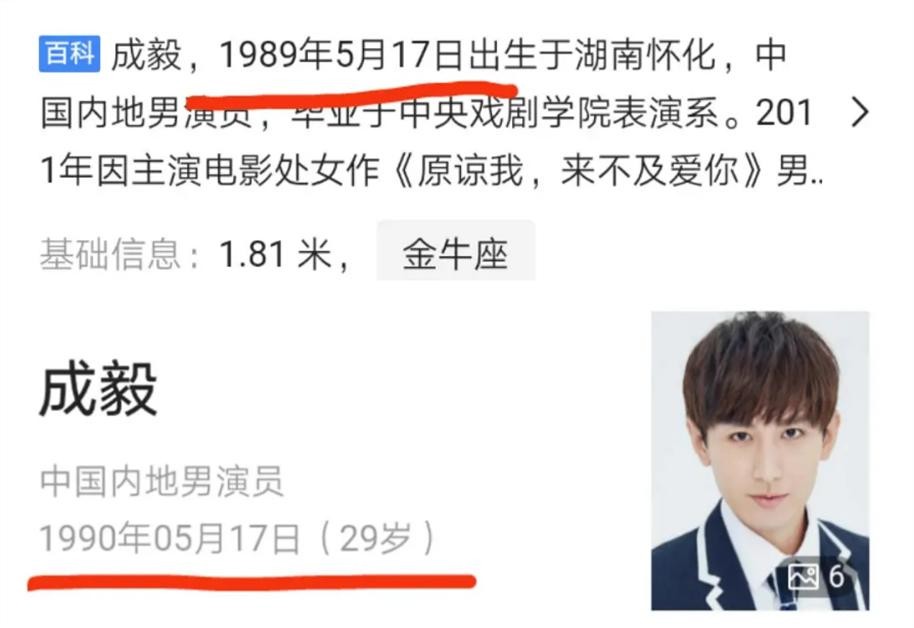 官方词条显示成毅是1990年5月17日出生,然而之前该词条显示的生日日期却是1989年5月17日,很多人都质疑成毅改了年龄。