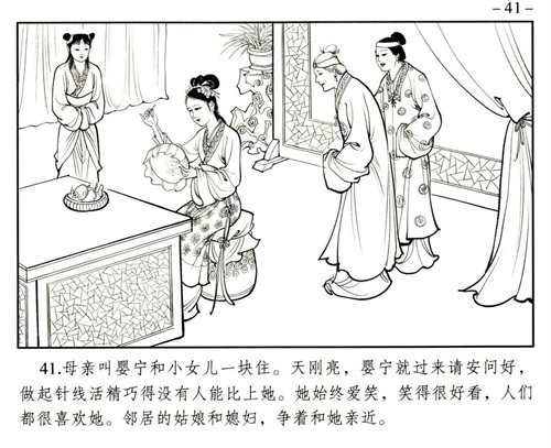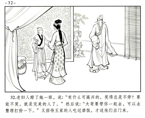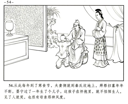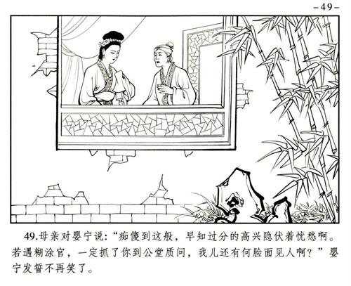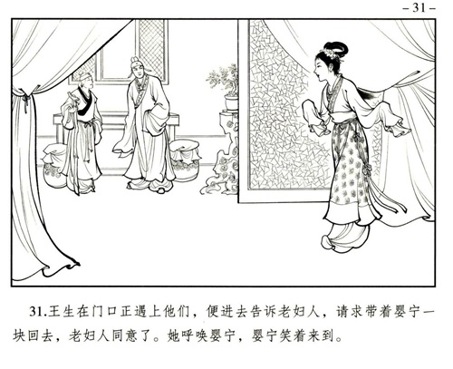 婴宁的目的很直白,就是将其母的骨骸与其父合葬。王子服的痴情感动了单纯善良的婴宁,美丽的婴宁以德报怨放下仇恨与王子服好好在一起了,婚后两人孕有一子。