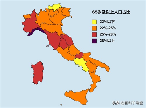 意大利的老龄化程度排名全球前列,就连最年轻的博尔扎诺,年龄中位数也达到了44.5岁,而最衰老的利古里亚,年龄中位数则高达51.6岁。