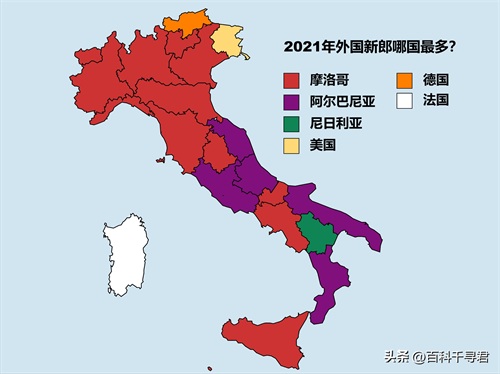意大利北部以摩洛哥人为主,南部以阿尔巴尼亚人为主。博尔扎诺的外国新郎以德国人为主,这片土地曾经属于奥匈帝国,一战后划归意大利,看来虽然过去100多年了,这里的人依旧心向着德意志人。