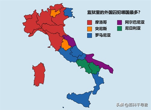 意大利北部大部分地区,监狱里的外国囚犯都是摩洛哥人最多。而在意大利南部,监狱里的外国囚犯以罗马尼亚人、阿尔巴尼亚人和尼日利亚人居多。
