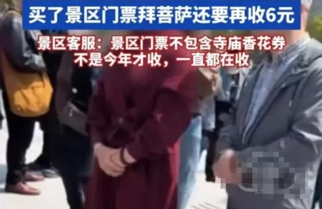 结果等她想进寺庙拜拜的时候,工作人员告知她不可以直接进去,还得花6元买了“香花券”才可以进。大妈瞬间生气了,她生气的倒不是六块钱的事情,而是景区这种二次收费的行为。大妈认为,景区门票就应该是包含了景区里面的所有地方了,但是进庙还要另外收费这个行为实在是过分了。大妈就想知道,门票为什么不包含进庙的六块钱?这六块钱到底是不是合法的收费行为。